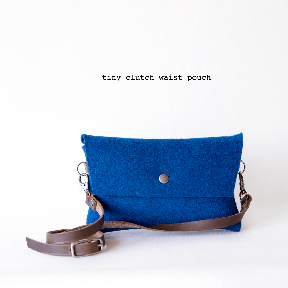I finally got the new deep blue Tiny Clutch into the shop! We’ve had them in the walk in shop for weeks but we kept selling out of them…so, it’s taken me a bit longer than usual to get these up. But, now you can get one! These make great gifts. Available as the best little fanny pack ever with the waist belt, or to use as a small clutch with a wrist strap.