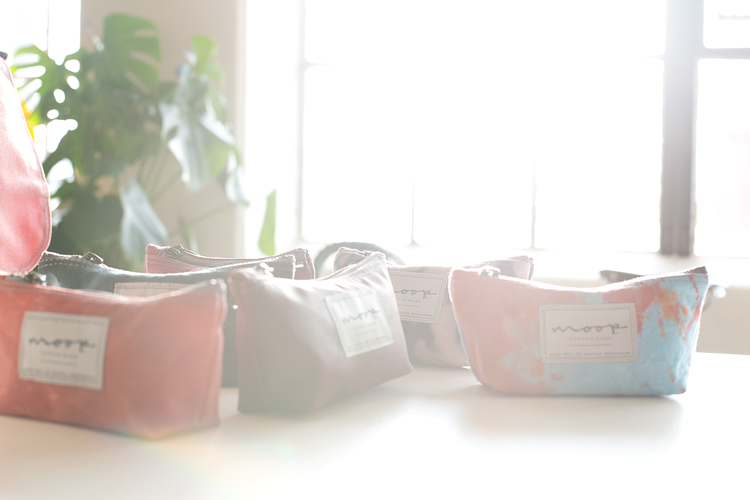 One of our core driving principles at Moop is the labor behind our bags, which is why we are always photographing and talking about the production process via our social media feeds. These zip pouches are where we begin training new assistants, teaching a high attention to detail, even in the smallest things. These are made with fabric upcycled from our main bag production, giving us a better environmental impact. These sell out quickly and are only made in small batches periodically throughout the year.