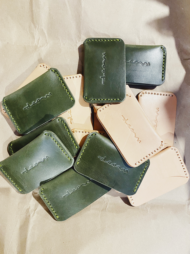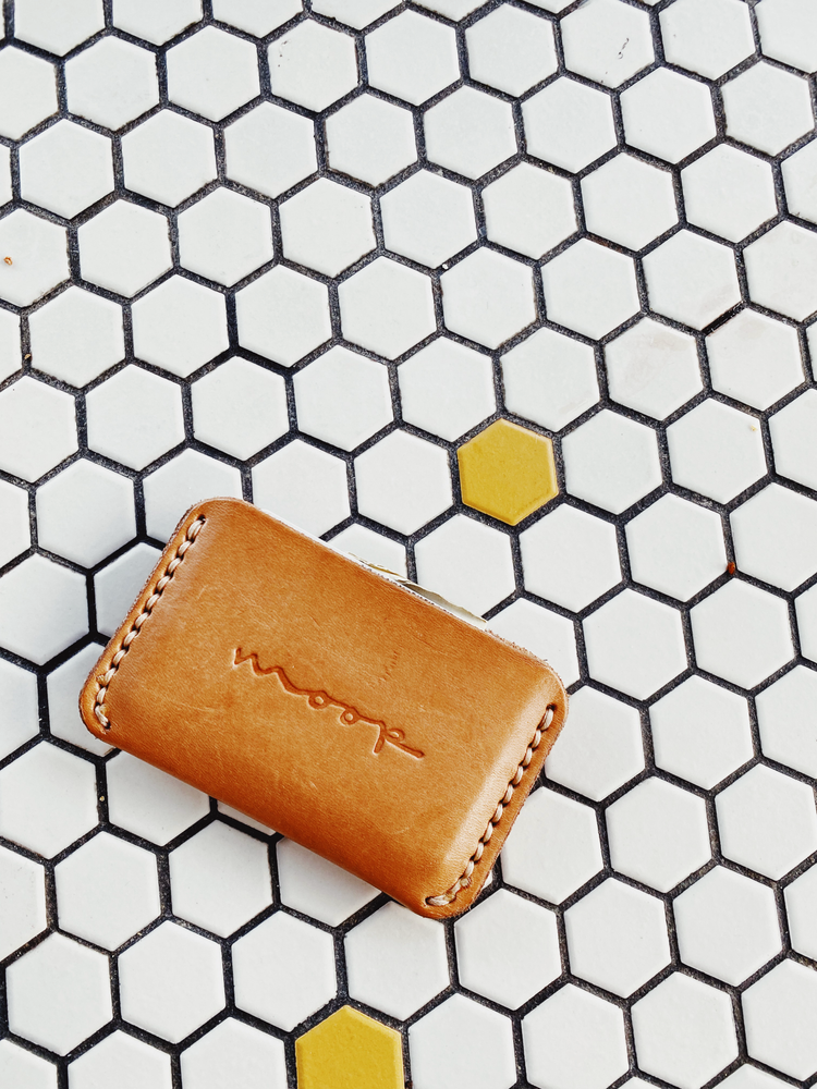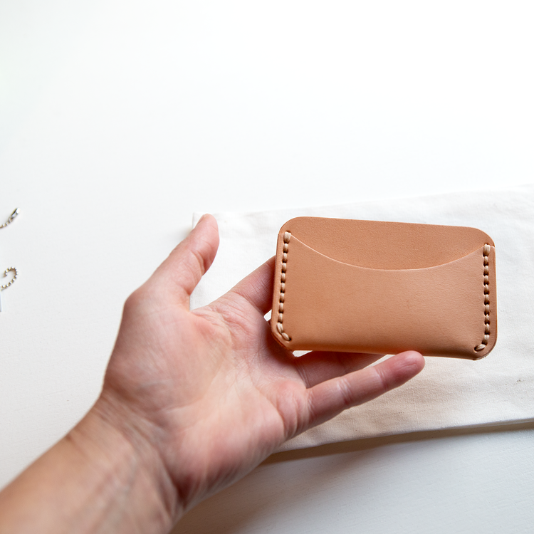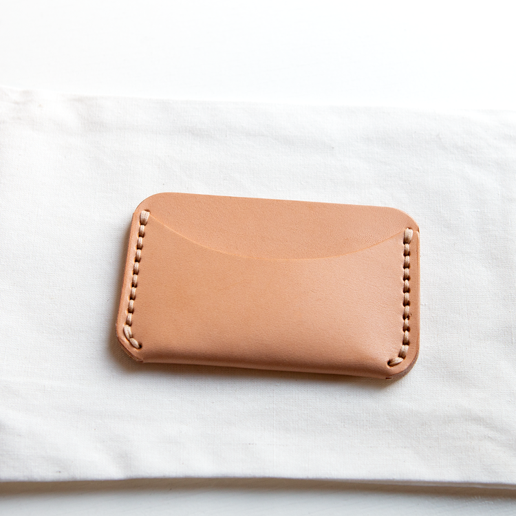 A compact card wallet, hand stitched from bridle quality veg tan leather, burnished edges, designed to age with you.