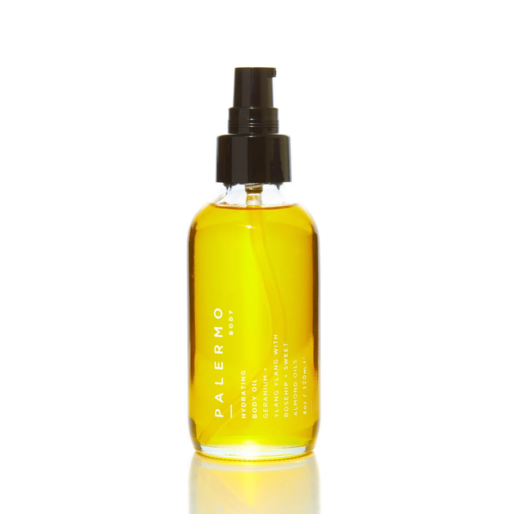 This floral, earthy blend of moisturizing oils rejuvenates with rosehip oil and vitamin-rich sweet almond oil aim to soothe skin stressors while fragrant ylang-ylang and geranium oils offer serene, grounding aromatherapy.