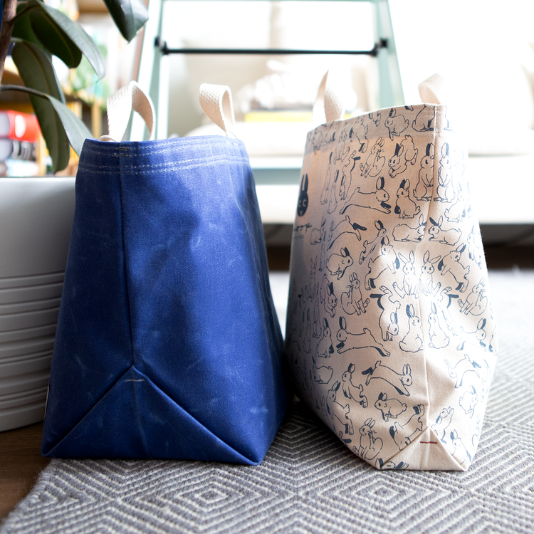 A super useful heavy waxed canvas tote with a structure all its own. We're using this for every utilitarian function we can think of. Made from heavy waxed canvas so the bag stands up on its own. We have one at the end of the couch full of bag blankets, one that we're carrying to and from the grocery store, farmers markets, soccer games and every other thing we do out in the world. We are social creatures and will do anything to be with friends. We love packing this bag full of picnic supplies and riding our bikes to the shores of Lake Washington. We've redesigned it with four interior slip pockets for organization, keeping wine bottles upright and thermoses from tipping over. Now lined in cordura nylon, making it very easy to wipe out the inside and easily dump out beach sand.