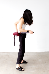 Our leather comes from a handmade shoe manufacturer in upstate New York. We have partnered with them to upcycle their scraps when we can. The leather detailing may have marks and scars due to this process but, it will never lose structural integrity. Leather hides are sourced from Horween, the famous Chicago tannery founded in 1905.