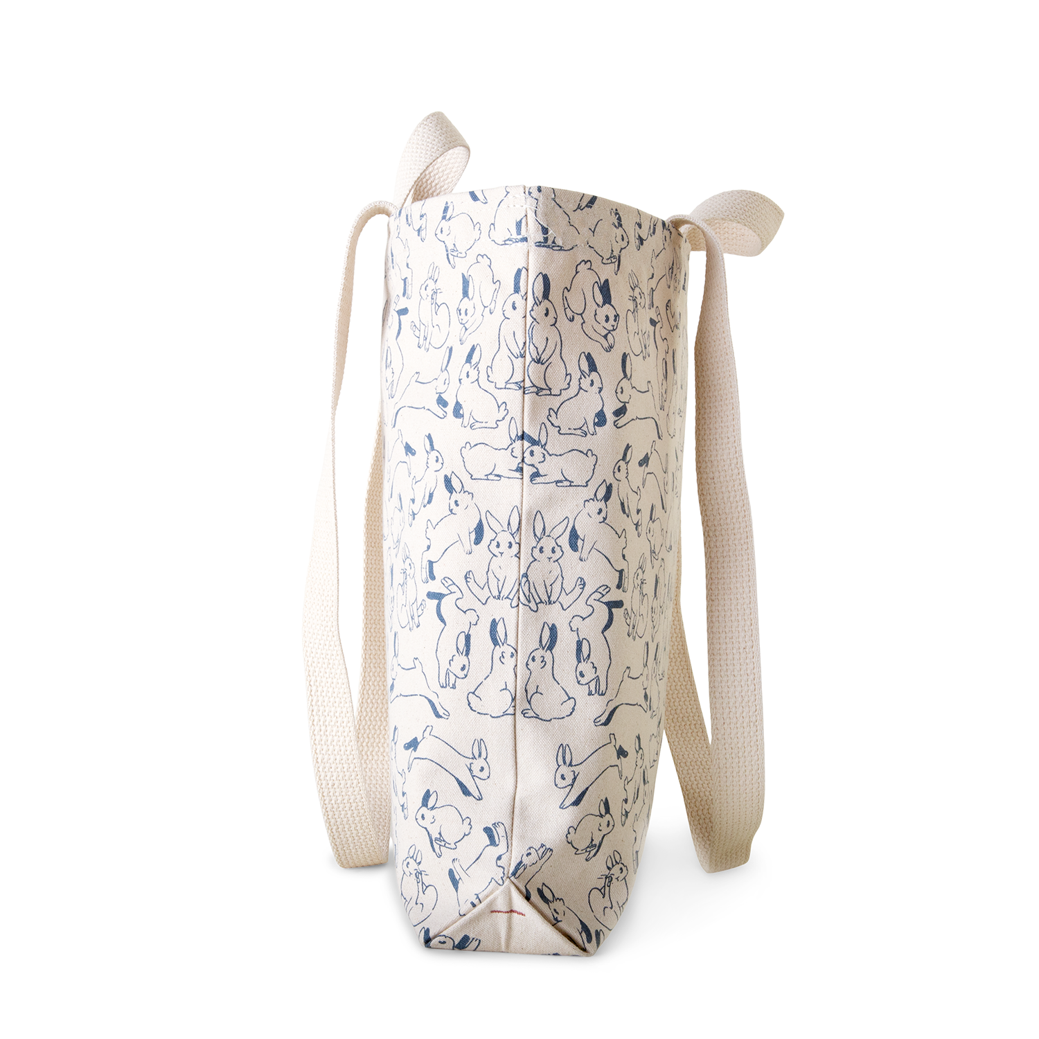 We started working on a collaboration with Camden late last year. He'd been making fan drawings from our photoshoots and we were instantly enamored. I live in Capitol Hill, Seattle, where the streets are filled with wild bunnies. It's possibly the cutest part of this neighborhood and always adds a bit of enchantment on my walks to and from the shop. They carry a “magic could happen at any moment” kind of power and those little buns popping in and out on my walk remind me to orient myself towards things that make me smile. Indulging the nonsensical moments of whimsy during our days helps to temper all of the other not as charming things we all juggle on a day to day basis. These totes come from that place. Buns all day!
