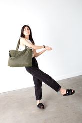 The Porter is our most versatile daily use tote bag. We use this for our work commutes, as a daily oversized purse like bag, carrying baby gear, gym clothes, books, laptops, water bottles, lunch containers. It holds it all. Time tested, durable, water resistant, not too heavy, very durable.