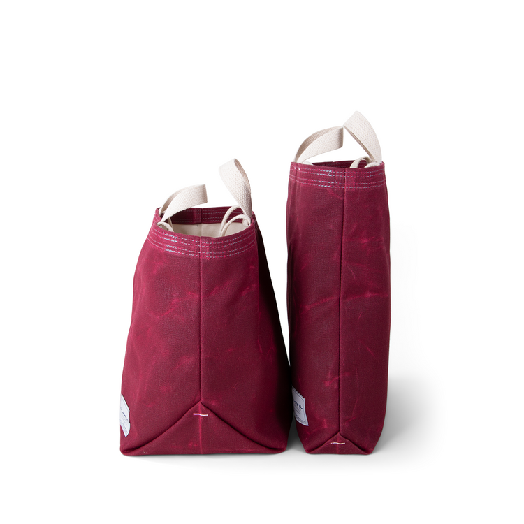 A pared down, super heavy waxed canvas version of our Work Tote. A tall, lean bag with lots of structure. We use this is a daily tote, filled with zip pouches of organization, an Envelope Clutch and usually a bag blanket (that doubles as a scarf in winter months and a picnic blanket in the warmer ones).