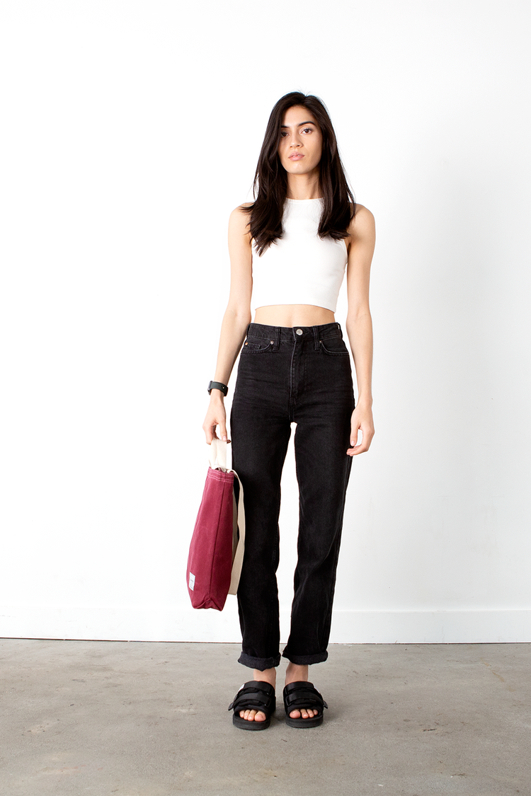 A pared down, super heavy waxed canvas version of our Work Tote. A tall, lean bag with lots of structure. We use this is a daily tote, filled with zip pouches of organization, an Envelope Clutch and usually a bag blanket (that doubles as a scarf in winter months and a picnic blanket in the warmer ones).