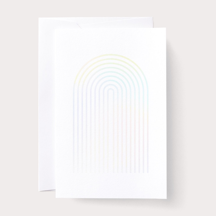 Iridescent foil stamped rainbow cover, letterpress printed by New England craftsmen, on elegant Crane 100% cotton, tree-free paper.