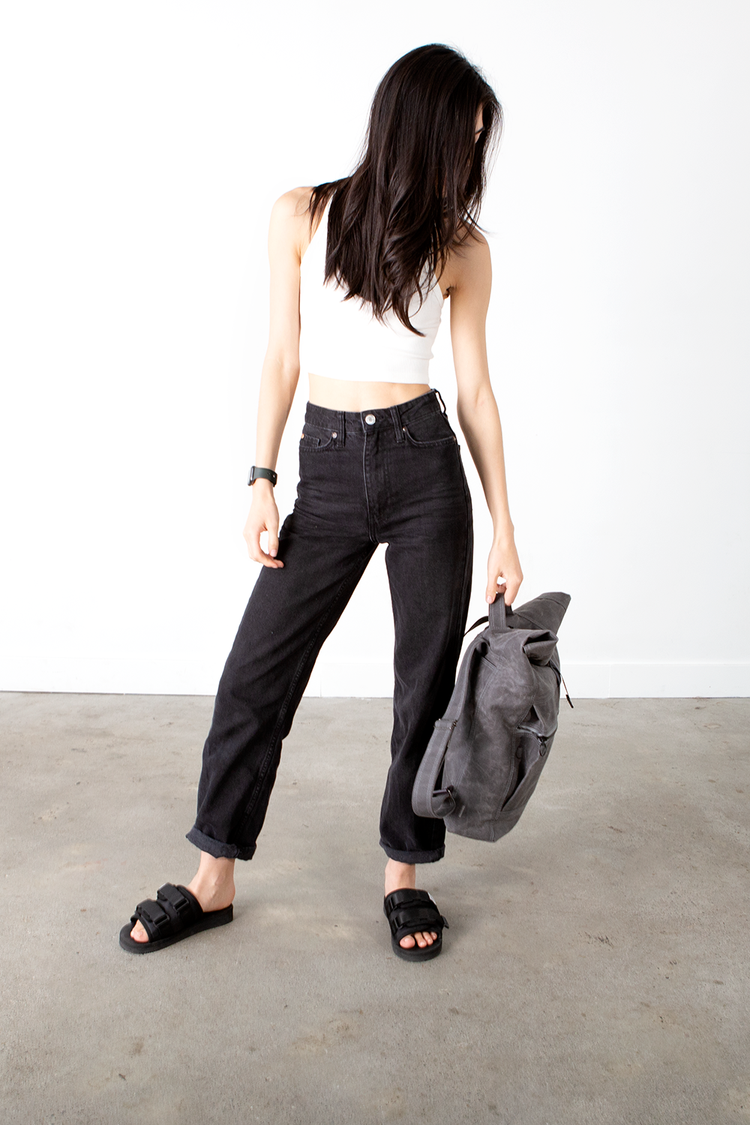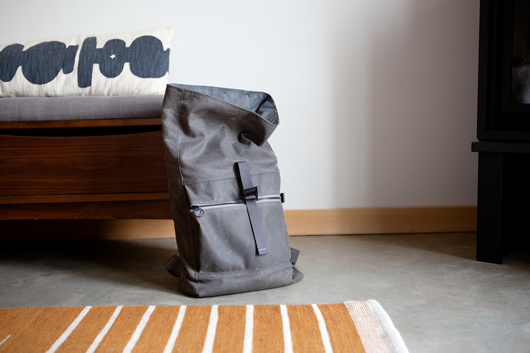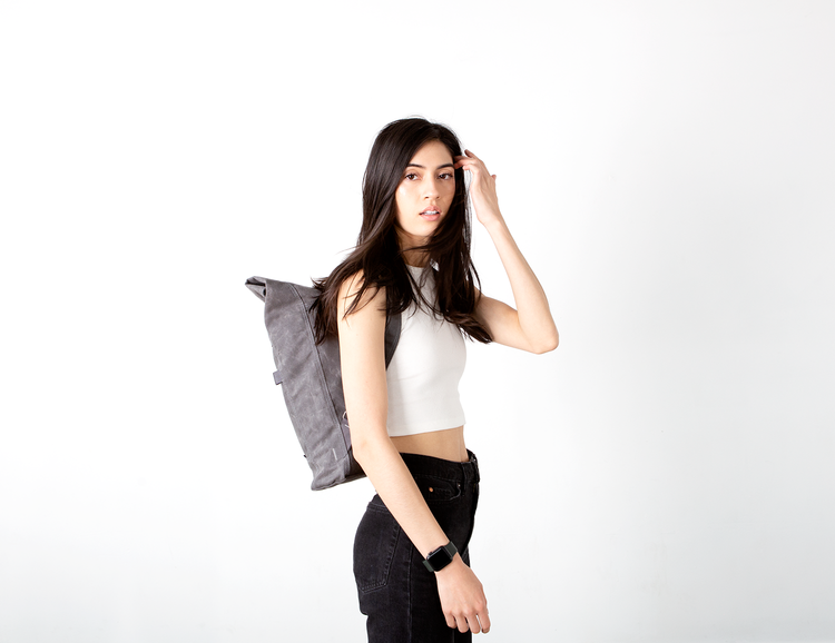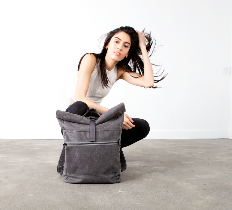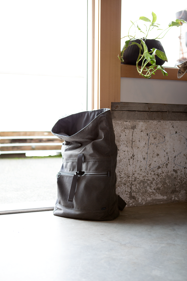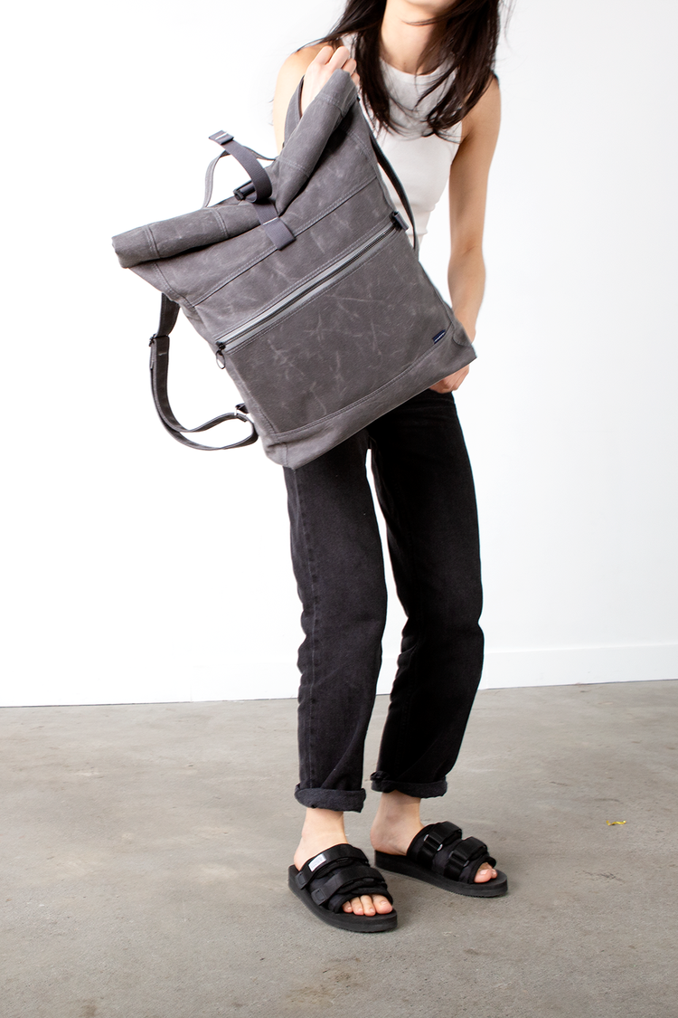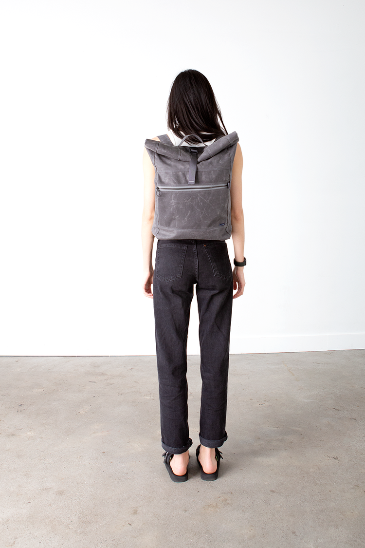 Backpack no.4 is a medium sized, roll top backpack. Designed with an adjustable magnetic closure and our signature top carrying handle. The roll top gives you space for all the things you didn't realize you needed. Fill it to the top, expand the available space, or cinch it down for lesser amounts.