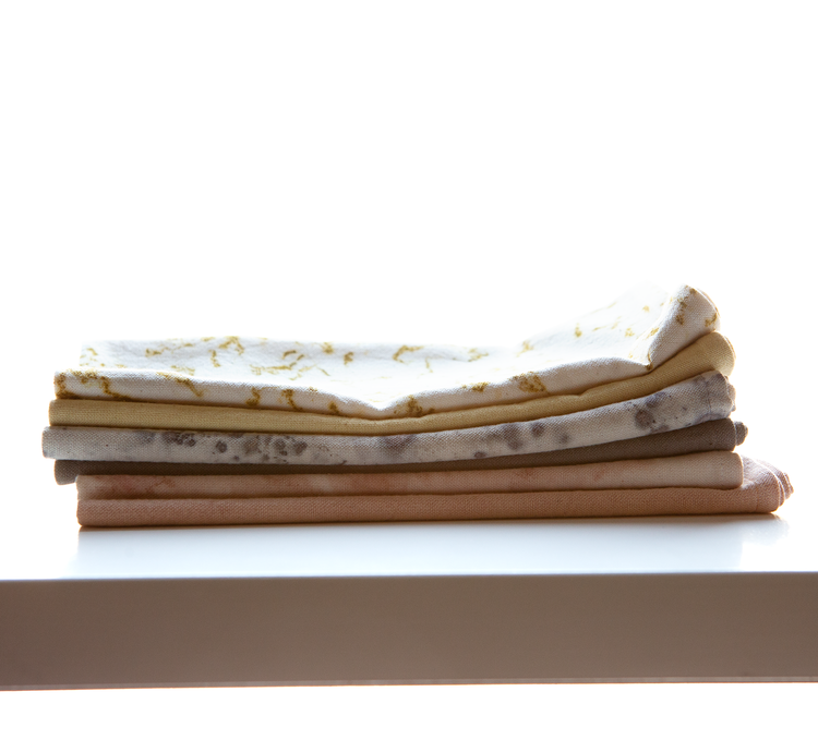 Set of all six napkins, one pattern dyed, one solid in each color.