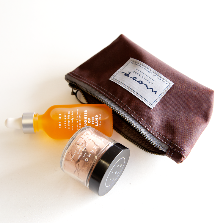 A small zip pouch perfect for use as a small toiletries case, a small bag to fill with all of the little things you want when you switch from bag to bag or as a place to stash your small stuff like bike tools, keys, phone cords, pencils, tampons, make up, charging cords, coins. Combine it with a Utility or Work Tote for the perfect combo.
