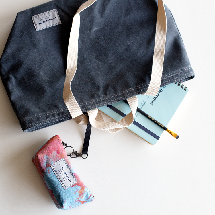 One of our core driving principles at Moop is the labor behind our bags, which is why we are always photographing and talking about the production process via our social media feeds. These zip pouches are where we begin training new assistants, teaching a high attention to detail, even in the smallest things. These are made with fabric upcycled from our main bag production, giving us a better environmental impact. These sell out quickly and are only made in small batches periodically throughout the year.